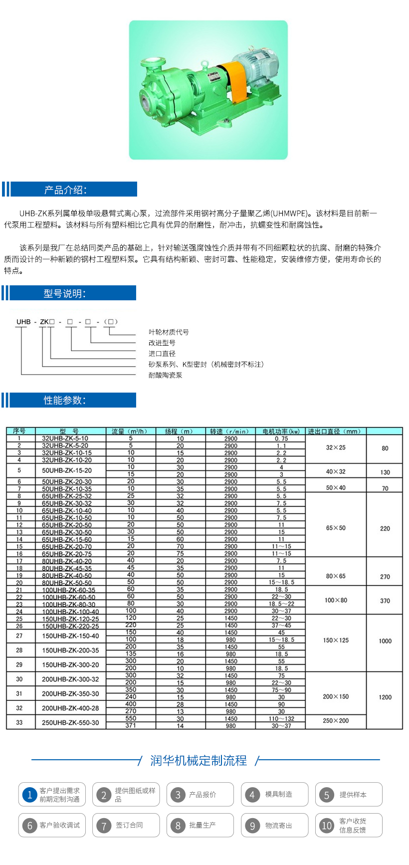 UHB-K(ZK)工程塑料襯塑泵、砂漿泵